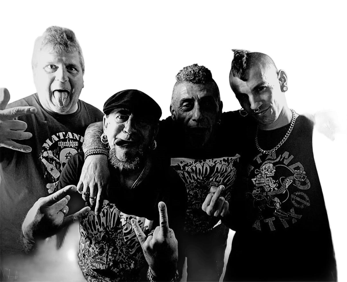 Wafis (bajo), Oskar (guitarra), Niño Malo (guitarra y voz) y un batería Bolinga.